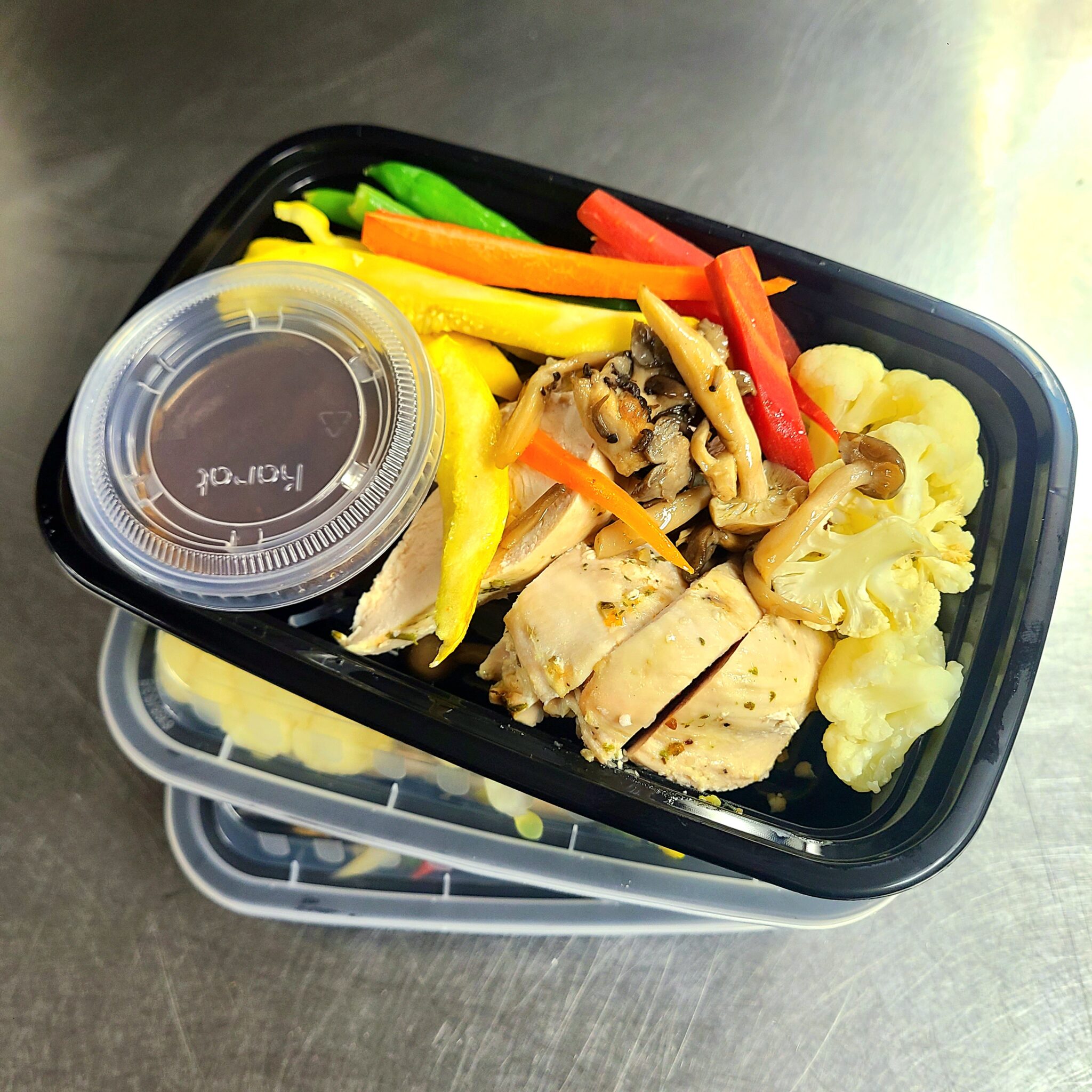 Chicken-Au-Vin-Paleo-Keto-Meal-Prep-Scottsdale Pasture raised chicken with thin sweet potato noodles, julienned carrots, yellow squash, mushrooms, pearl onions and red wine sauce