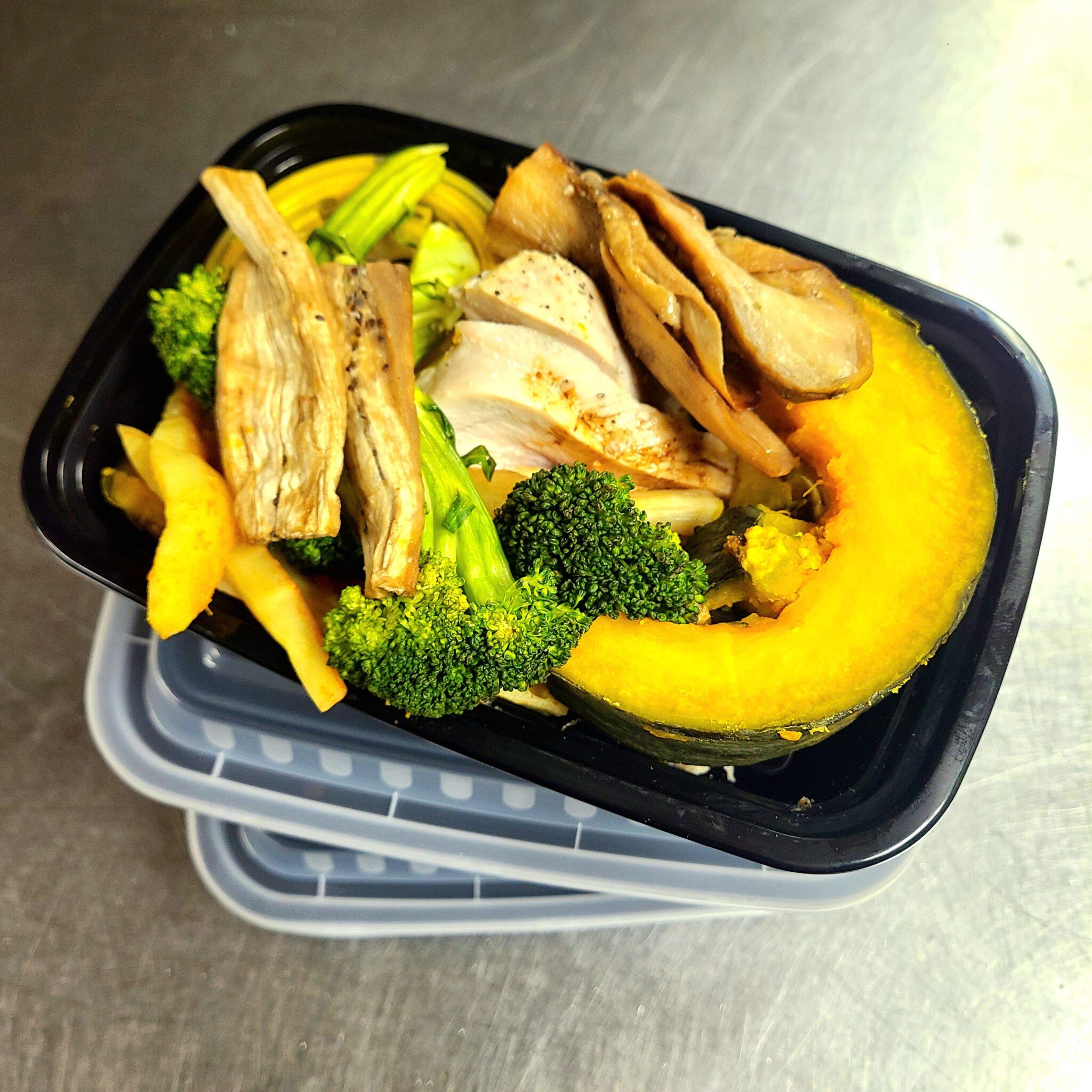 Balsamic glazed chicken breast with grilled kabocha squash, carrot, parsnip, eggplant and olive pesto sauce.